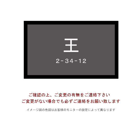 2025年 11月6日 表札の完成イメージ図です(お名前を小さく修正) 文字の大きさや配置の変更も可能です お気軽にお申し付け下さい ※ご変更がない場合でも「変更無し」のご連絡をお願いしております 1日以上 ご連絡がない場合はイメージ図通りで製作させていただきます 以上 よろしくお願い申し上げます