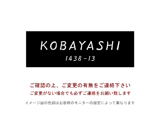 2025年 12月23日 表札完成イメージ図です 文字の大きさや配置の変更も可能です お気軽にお申し付け下さい ※ご変更がない場合でも「変更無し」のご連絡をお願いしております 1日以上ご連絡がない場合はイメージ図の内容で製作させていただきます 予めご了承下さい 以上 よろしくお願い申し上げます